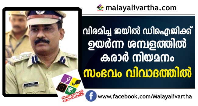 സംസ്ഥാനം കടുത്ത സാമ്പത്തിക പ്രതിസന്ധി നേരിടുന്ന സാഹചര്യത്തിൽ മുൻ ഡിഐജി പ്രദീപിന് ഉയർന്ന ശമ്പളത്തിൽ കരാർ നിയമനം നൽകണമെന്ന് ജയിൽ വകുപ്പിന്റെ ശുപാര്ശ ; സംഭവം വിവാദത്തിൽ