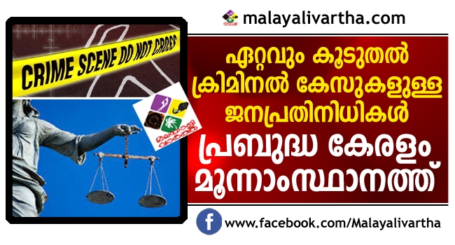 ഏറ്റവും കൂടുതല് ക്രിമിനല് കേസുകളുള്ള ജനപ്രതിനിധികളുള്ളത് ബിഹാറില്. രണ്ടാം സ്ഥാനം പശ്ചിമ ബംഗാളിനാണ്. മൂന്നാം സ്ഥാനമാണ് 'പ്രബുദ്ധ കേരള'ത്തിന്. സാമാജികര്ക്കെതിരായ 1,233 ക്രിമിനല് കേസുകള് സുപ്രീംകോടതി ഉത്തരവ് പ്രകാരം പ്രത്യേക കോടതികളിലേക്ക് കൈമാറിയിട്ടുണ്ടെന്ന് കേന്ദ്ര സര്ക്കാര് രേഖകള് പറയുന്നു. ഇതില് 136 കേസുകള് തീര്പ്പാക്കിയിട്ടുണ്ട്. ബിഹാറില് നിന്നുള്ള 260 കേസുകള് പ്രത്യേക കോടതികളിലേക്കുമാറ്റി. ഇതില് ആറു മാസത്തിനിടെ 11 എണ്ണം തീര്പ്പാക്കി.