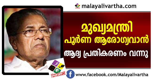 ചികിത്സയ്ക്കായി അമേരിക്കയിൽ പോയ മുഖ്യമന്ത്രി പിണറായി വിജയൻ പൂർണ ആരോഗ്യവാനായിരിക്കുന്നു എന്ന് മന്ത്രി ഇ.പി.ജയരാജൻ. യുഎസിലേക്കു പോയതു വൈദ്യപരിശോധനയുടെ ഭാഗമായിട്ടാണെന്നും അദ്ദേഹം പൂർണ ആരോഗ്യവാനാണെന്നും മുഖ്യമന്ത്രിയുടെ ചികിത്സയെക്കുറിച്ചു സർക്കാർ ഭാഗത്തുനിന്നുള്ള ആദ്യ ഔദ്യോഗിക വിശദീകരണം.
