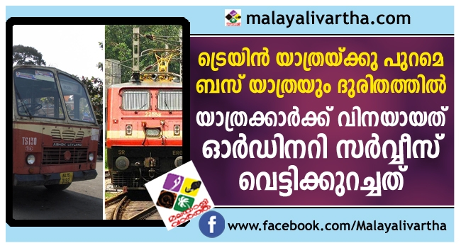 ഓര്ഡിനറി സര്വ്വീസുകള് വെട്ടിക്കുറച്ചു... ട്രെയിന് യാത്രയ്ക്കു പുറമേ ബസ് യാത്രയും ദുരിതത്തില്, യാത്രക്കാര്ക്ക് കൃത്യസമയത്ത് ഡ്യൂട്ടിക്ക് എത്തിച്ചേരാന് കഴിയുന്നില്ല
