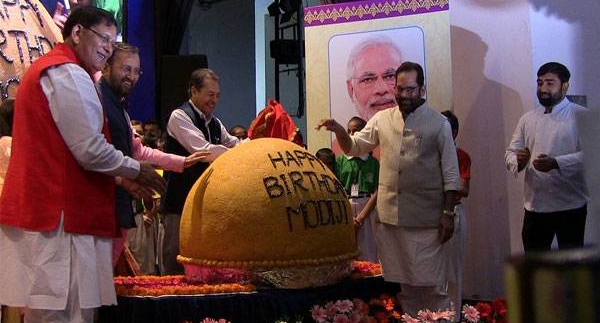 നരേന്ദ്രമോഡിയുടെ ജന്മദിനം കേന്ദ്രമന്ത്രിമാര് ആഘോഷിച്ചത് 568 കിലോ ഭാരമുള്ള ലഡുവുമായി; പ്രധാനമന്ത്രിയുടെ ജന്മദിനം സ്വച്ഛത ദിവസമായി കൊണ്ടാടുകയാണെന്ന് പ്രകാശ് ജാവേദ്ക്കര്