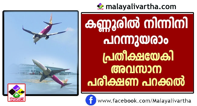 കണ്ണൂര് വിമാനത്താവളത്തിലെ അവസാനപരീക്ഷണ പറക്കല് വിജയം കണ്ടു. രാവിലെ 9.45ന് തിരുവനന്തപുരത്ത് നിന്ന് പുറപ്പെട്ട എയര് ഇന്ത്യയുടെ ബോയിംഗ് 747 വിമാനം 11.38ന് കണ്ണൂര് വിമാനത്താവളത്തിന്റെ റണ്വേയില് വിജയകരമായി ലാന്ഡ് ചെയ്തു. എയര്പോര്ട്ട് അതോറിറ്റി കാലിബ്രേഷന് വിമാനം ഉപയോഗിച്ചു നടത്തിയ പരിശോധനയെത്തുടര്ന്നു തയാറാക്കിയ ഇന്സ്ട്രുമെന്റ് അപ്രോച്ച് പ്രൊസീജ്യര് അനുസരിച്ചാണു വിമാനം ഇറങ്ങിയത്.