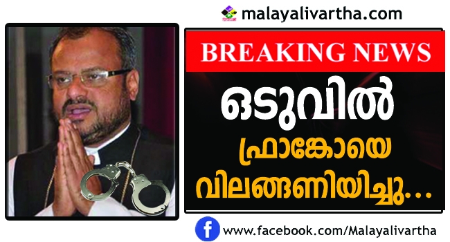 കന്യാസ്ത്രീയ ബലാല്സംഗം ചെയ്ത കേസില് ജലന്ദര് ബിഷപ്പ് ഫ്രാങ്കോ മുളയ്ക്കലിന്റെ അറസ്റ്റ് പൊലീസ് രേഖപ്പെടുത്തി. തൃപ്പൂണിത്തുറയിലെ വനിതാ സൈബര് പൊലീസ് ഓഫീസില് മൂന്ന് ദിവസം നീണ്ട ചോദ്യം ചെയ്യലിനൊടുവിലായിരുന്നു അറസ്റ്റ്. നീണ്ട 87 ദിവസത്തെ അന്വേഷണത്തിനൊടുവിലായിരുന്നു അറസ്റ്റ്. ഇന്ത്യയില് ആദ്യമായാണ് ബലാല്സംഗ കേസില് ഒരു ബിഷപ്പ് അറസ്റ്റിലാകുന്നത്. അതും സഭയിലെ തന്നെ ഒരു കന്യാസ്ത്രീയെ ബലാല്സംഗം ചെയ്തെന്ന പരാതിയില്. തുടക്കം മുതല് പരാതി കെട്ടിച്ചമച്ചതാണെന്നാണ് ബിഷപ്പും മിഷനറീസ് ഓഫ് ജീസസ് എന്ന സഭയും മറ്റ് പല സഭാധ്യക്ഷന്മാരും ആരോപിച്ചിരുന്നത്. അതിന്റെയെല്ലാം മുനയൊടിക്കുന്നതാണ് അറസ്റ്റ്.