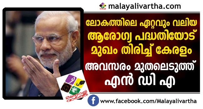 ലോകത്തിലെ ഏറ്റവും വലിയ ആരോഗ്യ പദ്ധതിയോട് മുഖം തിരിച്ച് കേരളം ; ആയുഷ്മാന് ഭാരത് ഇന്ഷുറന്സ് പദ്ധതില് കേരളം ഉള്പ്പെടാത്തത് സംസ്ഥാന സര്ക്കാരിനെതിരെ രാഷ്ട്രീയ ആയുധമാക്കാന് എന്ഡിഎ.