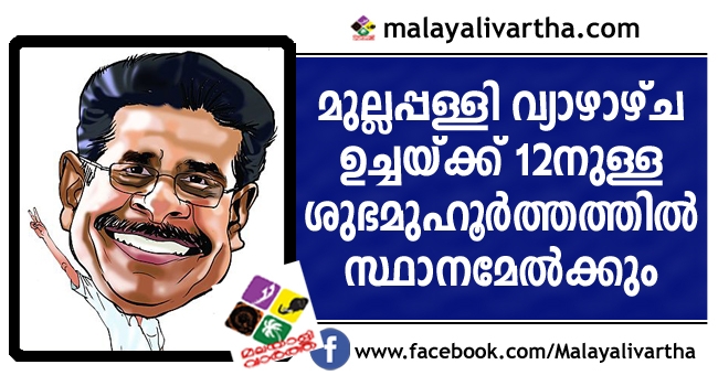 ഗ്രൂപ്പിന് അതീതനായി മുല്ലപ്പള്ളി ചേകവര് വ്യാഴാഴ്ച കെ.പി.സി.സി അധ്യക്ഷസ്ഥാനം ഏറ്റെടുക്കും പട്ടാഭിഷേകത്തിന് മുതിര്ന്ന നേതാവ് എ.കെ ആന്റണി, ഉമ്മന്ചാണ്ടി, ചെന്നിത്തല, പുതിയ ഭാരവാഹികള് എന്നിവര് പങ്കെടുക്കും