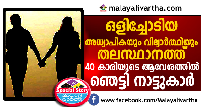 കേരളം ഏറെ ചര്ച്ച ചെയ്തതാണ് വിവാഹിതയും പത്തു വയസുള്ള കുട്ടിയുമുള്ള അദ്ധ്യാപിക പത്താം ക്ലാസ്സ് വിദ്യാര്ത്ഥിയുമായി ഒളിച്ചോടിയതായ വാര്ത്ത. ചേര്ത്തലയില് നിന്നും ഞായറാഴ്ച മുതല് കാണാതായ 40 കാരിയ്ക്കും 16 കാരനും വേണ്ടി മുഹമ്മ എസ്ഐ യുടെ നേതൃത്വത്തില് തെരച്ചില് ആരംഭിച്ചിട്ടുണ്ട്. മൊബൈല്ഫോണ് പിന്തുടര്ന്ന് ഇരുവരും തിരുവനന്തപുരത്ത് വര്ക്കല ഭാഗത്ത് ഉള്ളതായി സൂചനകള് കിട്ടിയിട്ടുണ്ട്.