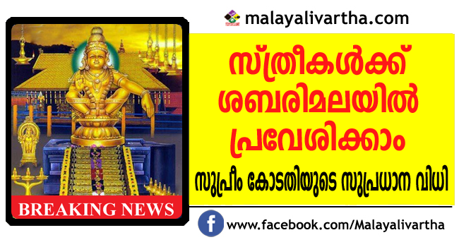 ശബരിമലയില് പ്രായം നോക്കാതെ സ്ത്രീകള്ക്ക് പ്രവേശനമനുവദിക്കണം എന്നാവശ്യപ്പെടുന്ന ഹര്ജിയില് സുപ്രീംകോടതിയുടെ അഞ്ചംഗ ഭരണഘടനാ ബെഞ്ച് വെള്ളിയാഴ്ച വിധിപഞ്ഞു. സ്ത്രീകളെ മാറ്റിനിര്ത്താന് കഴിയില്ലെന്ന സുപ്രധാന വിധിയാണ് വന്നത്. സ്വവര്ഗാനുരാഗം, വിവാഹേതര ലൈംഗിക ബന്ധം എന്നീ സുപ്രധാന വിധികള്ക്ക് പിന്നാലെയാണ് സ്ത്രീകളെ സംബന്ധിച്ച് മറ്റൊരു ചരിത്രപരമായ വിധി വന്നത്.