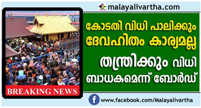 ശബരിമല സ്ത്രീപ്രവേശനത്തില് ദേവസ്വം ബോര്ഡ് മലക്കംമറിഞ്ഞു, വിധി നടപ്പാക്കും ദേവഹിതം നോക്കണ്ട, വിശ്വാസത്തിന്റേയും ആചാരാനുഷ്ഠാനങ്ങളുടേയും ലംഘനമാണെന്നാണ് ബോര്ഡ് കോടതിയില് വാദിച്ചിരുന്നത്