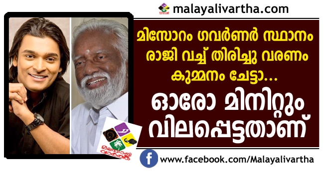 എനിക്കറിയാവുന്ന കുമ്മനം രാജശേഖരൻ ചേട്ടൻ മരിച്ചു പോയി ; മിസോറം ഗവർണർ സ്ഥാനം രാജി വച്ച് തിരിച്ചു വരണം കുമ്മനം ചേട്ടാ; മിസോറാം ഗവർണർ കുമ്മനം രാജശേഖരനെ കേരളത്തിലേക്ക് ക്ഷണിച്ച് രാഹുൽ ഈശ്വർ