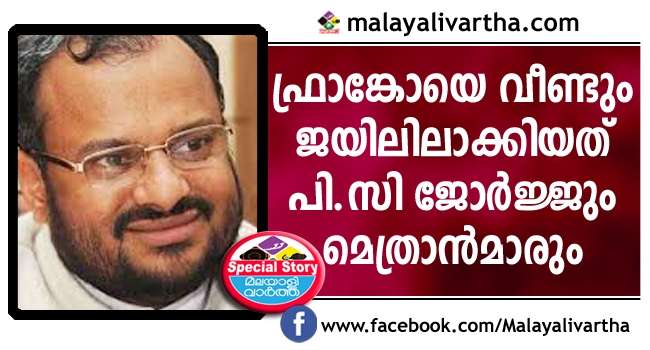 ഫ്രാങ്കോ മുളയ്ക്കല് പാലാ സബ് ജയിലില് റിമാന്ഡിലായ ശേഷം പി.സി ജോര്ജ്ജ്, മാര് മാത്യു അറയ്ക്കല്, സഹായ മെത്രാന് ജോസ് പുളിക്കല്, പത്തനംതിട്ട രൂപത സഹായ മെത്രാന് സാമുവല് മാര് ഐറേനിയോസ് എന്നിവര് സന്ദര്ശിച്ചിരുന്നു. മാത്രമല്ല കന്യാസ്ത്രീക്കെതിരായ തെളിവുകള് പുറത്ത് വിടുമെന്ന് പി.സി ജോര്ജ്ജ് വാര്ത്താസമ്മേളനത്തില് വ്യക്തമാക്കി. കൊച്ചിയില് കന്യാസ്്ത്രീകള് സമരം തുടങ്ങിയ ദിവസം പരാതിക്കാരിയായ കന്യാസ്ത്രീ മാധ്യമങ്ങളെ കാണാന് തീരുമാനിച്ചിരുന്നു. അന്ന് തന്നെ പി.സി ജോര്ജ്ജ് കന്യാസ്ത്രീക്കെതിരെ കോട്ടയത്ത് വാര്ത്താസമ്മേളനം നടത്തിയിരുന്നു. അവരെ അഭിസാരിക എന്നടക്കം വിളിച്ചു. 12 തവണ ബലാല്സംഗം ചെയ്തിട്ടും മിണ്ടാതിരുന്ന കന്യാസ്ത്രീ 13ാമത്തേത് മാത്രം പരാതിയാക്കിയതിന് പിന്നില് ദുരൂഹതയുണ്ടെന്നും അവര്ക്കൊപ്പം സമരം ചെയ്യുന്ന അഞ്ച് കന്യാസ്ത്രീകളുടെ സ്വഭാവം ശരിയല്ലെന്നും പി.സി ആരോപിച്ചിരുന്നു. തുടര്ന്ന് പരാതിക്കാരി വാര്ത്താസമ്മേളനം ഉപേക്ഷിച്ചു. പി.സി ജോര്ജ്ജിനെതിരെ കേസ് കൊടുത്തു.