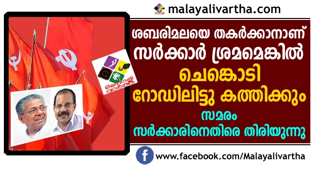 അയ്യപ്പ ഭക്തര് അവരുടെ ആവശ്യത്തിനായി പോരാടുമ്പോള് ആതില് രാഷ്ട്രീയം കലര്ത്തി ലാഭം കൊയ്യാന് പരിശ്രമിക്കുക.യാണ് ചിലര്. അതുകൊണ്ടുതന്നെ ഇന്ന് പുറത്തിറങ്ങിയ ദേശാഭിമാനി മുഖ പത്രത്തില് തങ്ങള് ആരെയും മല കയറ്റാനോ ഇറക്കാനോ ശ്രമിക്കില്ലെന്ന് സിപിഎം നിലപാടെടുത്തത്. പ്രക്ഷോഭം സര്ക്കാരിനു നേരെ തിരിക്കാനുള്ള ശ്രമം നടന്നതിനാലാണിത്. അതേസമയം ശബരിമല വിഷയത്തില് സര്ക്കാരിനെയും മന്ത്രിമാരെയും രൂക്ഷഭാഷയില് വിമര്ശിച്ചാണ് എ.എന്.രാധാകൃഷ്ണന് സമരത്തിന് പുതിയ മാനം നല്കുന്നത്. സര്ക്കാരിനെതിരെ തിരിക്കുക എന്ന വ്യക്തമായ മാനം