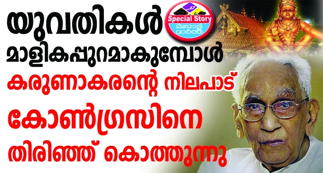 ശബരിമലയില് യുവതികളെ പ്രവേശിപ്പിക്കണമെന്നുള്ള സുപ്രീംകോടതി വിധി തിടുക്കത്തില് നടപ്പാക്കാനൊരുങ്ങുന്ന പിണറായി സര്ക്കാരിനെതിരെ ആഞ്ഞടിരക്കുന്ന കോണ്ഗ്രസിന് കെ.കരുണാകരന് സര്ക്കാരിന്റെ നിലപാട് തലവേദനയാകുന്നു. 1991ലാണ് പത്തിനും 50നും ഇടയിലുള്ള സ്ത്രീകളെ വിലക്കിക്കൊണ്ട് കേരള ഹൈക്കോടതിയുടെ ഡിവിഷന് ബെഞ്ച് വിധി പ്രസ്താവിച്ചത്. അന്ന് മുഖ്യമന്ത്രിയായിരുന്ന കെ. കരുണാകരന് സര്ക്കാര് നല്കിയ സത്യവാങ്മൂലത്തില് മണ്ഡല-മകരവിളക്ക് കാലത്ത് യുവതികളെ പ്രവേശിപ്പിക്കാനാവില്ലെന്നും എല്ലാ മലയാളമാസവും ഒന്നിന് നടതുറക്കുമ്പോള് അവര്ക്ക് ദര്ശനം നടത്താമെന്നും പറഞ്ഞിരുന്നു. സി.പി.എമ്മും ബി.ജെ.പിയും ഈ നിലപാട് ആയുധമാക്കുകയാണിപ്പോള്.
