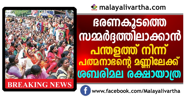 ശബരിമല യുവതീ പ്രവേശനത്തില് നാടെങ്ങും പ്രതിഷേധം ശക്തമാകുമ്പോള് പന്തളത്ത് നിന്ന് പത്മനാഭന്റെ മണ്ണിലേക്ക് ഭക്തലക്ഷങ്ങള് ശബരിമല രക്ഷായാത്ര നടത്തുന്നു