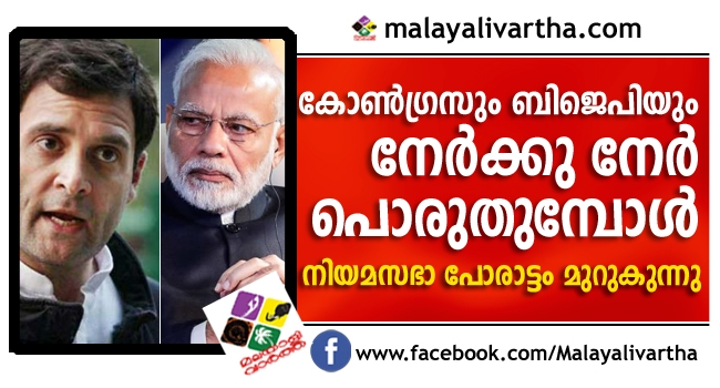 കോൺഗ്രസും ബിജെപിയും നേർക്കു നേർ പൊരുതുമ്പോൾ; കോൺഗ്രസിന് നഷ്ട പ്രതാപം വീണ്ടെടുക്കണം ; ബിജെപ്പിക്കാവട്ടെ നിലനിൽപ്പിന്റെ പോരാട്ടവും മോദി ഭരണ തുർച്ചയും ; നിയമസഭാ പോരാട്ടം മുറുകുന്നു