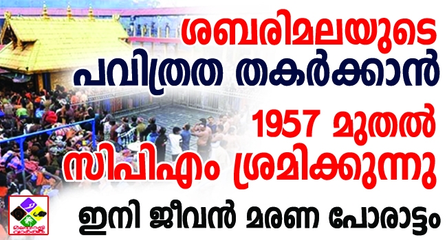 ശബരിമലയുടെ പവിത്രത തകര്ക്കാന് 1957 മുതല് സിപിഎം ശ്രമിക്കുന്നു. തീപിടുത്തുമുണ്ടായപ്പോള് ശബരിമലയിലെ വിഗ്രഹം നശിച്ചു എന്നും ആചാരങ്ങള് നഷ്ടപ്പെട്ടുവെന്നാണ് അന്നത്തെ സര്ക്കാര് കോടതിയില് സത്യവാങ്മൂലം നല്കിയത്.