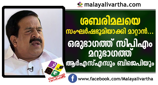 ശബരിമലയെ സംഘർഷ ഭൂമിയാക്കിമാറ്റാൻ ഒരുഭാഗത്ത് സിപിഎം മറുഭാഗത്ത് ബിജെപിയും ആർഎസ്എസും; ശബരിമല വിഷയത്തില് യുഡിഎഫ് വിശ്വാസികള്ക്ക് ഒപ്പമെന്ന് രമേശ് ചെന്നിത്തല