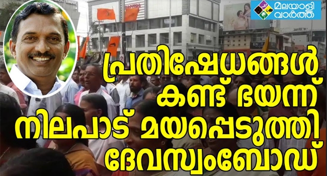 ശബരിമലയില് പ്രായഭേദമെന്യേ സ്ത്രീകളെ പ്രവേശിപ്പിക്കണമെന്ന സുപ്രീംകോടതി വിധി നടപ്പാക്കുന്നതില് നിലപാട് മയപ്പെടുത്തി തിരുവിതാംകൂര് ദേവസ്വം ബോര്ഡ്. കോടതിവിധി നടപ്പാക്കുമെന്ന് ആദ്യം നിലപാടെടുത്ത ബോര്ഡ് പ്രസിഡന്റ് എ. പദ്മകുമാര് ക്ഷേത്രാചാരം നിലനിര്ത്തി തീര്ഥാടനം പൂര്ത്തിയാക്കുകയാണ് ലക്ഷ്യമെന്ന് ബുധനാഴ്ച ചേര്ന്ന ബോര്ഡ് യോഗത്തിനുശേഷം പ്രതികരിച്ചു. സംസ്ഥാന വ്യാപകമായി നടന്നുകൊണ്ടിരിക്കുന്ന പ്രതിഷേധള്തന്നെയാണ് നിലപാട് മയപ്പെടുത്തിയതാന് ദവസ്വം ബോര്ഡ് നിര്ബന്ധിതരാടതെന്നാണ് വിലയിരുത്തല്.