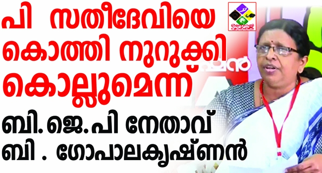 പി സതീദേവിയെ കൊത്തി നുറുക്കി കൊല്ലുമെന്ന് ബി ജെ പി നേതാവ് ബി . ഗോപാലകൃഷ്ണന്റെ ഭീഷണി, മുഖ്യമന്ത്രിക്കും ഡിജിപിയ്ക്കും പരാതി നല്കി