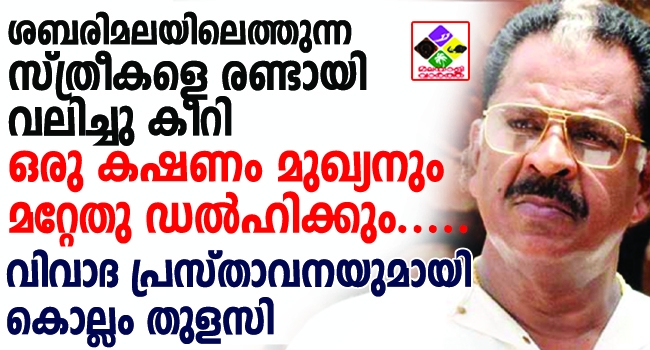 ഇവിടുത്തെ അമ്മമാരെല്ലാം ശബരിമലയ്ക്ക് പോകണം. എന്തിനാണെന്നോ. ചില അവളുമാരെ ഒരുക്കിയിട്ടുണ്ട്. അങ്ങനെ ആരെങ്കിലും വന്നാല്, അവളുമാരെ രണ്ടായി വലിച്ചു കീറി ഒരു ഭാഗം ഡല്ഹിയിലേക്കും മറ്റൊരു ഭാഗം മുഖ്യമന്ത്രിയുടെ മുറിയിലേക്കും ഇട്ടുകൊടുക്കണമെന്ന് കൊല്ലം തുളസി പറഞ്ഞു.