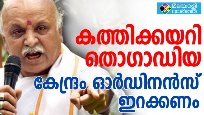 സൂപ്രീം കോടതി വിധി മറികടക്കാന് കേന്ദ്ര സര്ക്കാര് ഓര്ഡിന്സ് ഇറക്കണമെന്ന് എ.എച്ച്.പി അധ്യക്ഷന് പ്രവീണ് തൊഗാഡിയ ; വിധി അംഗീകരിക്കാനാവില്ലെന്ന് വിശ്വാസികള്.