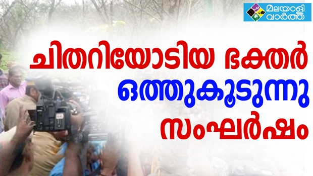 പോലീസുകാർ കളം നിറഞ്ഞതോടെ ഭക്തർ പിന്നോട്ടോടി; സമര പന്തൽ പൊളിച്ചെറിഞ്ഞ് പോലീസ്... പിന്മാറിയ ഭക്തർ ഒത്തുകൂടുന്നു