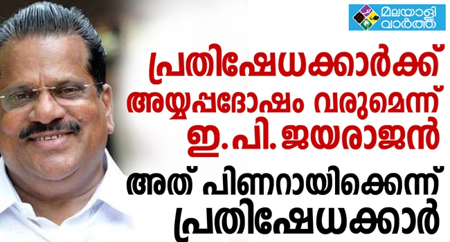 ശബരിമല പ്രതിഷേധം ശക്തമാകുമ്പോള് വിശ്വാസികള്ക്ക് അയ്യപ്പദോഷമുണ്ടാകുമെന്ന് മന്ത്രി ഇ.പി. ജയരാജന്; അവര് ചെയ്യുന്നത് മഹാപാപം; അവര്ക്ക് നാശമുണ്ടാകും