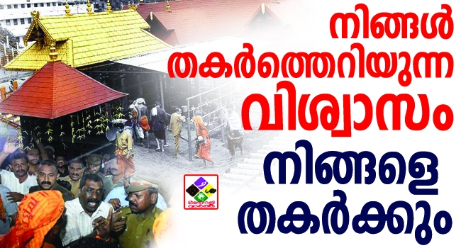 ആയിരക്കണക്കിന് അമ്മമാരുടെ ഉള്ളിലാളുന്ന ഭക്തിയില് പ്രതിഷേധം ജ്വലിക്കുന്നു; നിങ്ങള് തകര്ത്തെറിയുന്ന വിശ്വാസങ്ങള് നിങ്ങളെ തകര്ക്കും ; ഇവിടെ തോല്ക്കുന്നത് കേരളമാണ്. അയ്യപ്പനാണ്