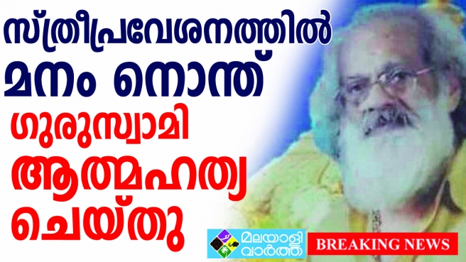 ശബരിമല യുവതീപ്രവേശനത്തിൽ മനംനൊന്ത് 85 കാരനായ ഗുരുസ്വാമി ട്രെയിന് മുന്നില് ചാടി ആത്മഹത്യ ചെയ്തു
