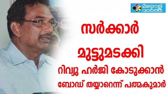 സര്ക്കാര് മുട്ടുമടക്കി റിവ്യു ഹര്ജി കോടുക്കാന് ബോഡ് തയ്യാറെന്ന് പത്മകുമാര്; ശബരിമലയിലെ പ്രതിസന്ധി പരിഹരിക്കാന് റിവ്യു ഹര്ജി നല്കാന് തയാറെന്ന് ദേവസ്വംബോര്ഡ്; ബാര്ഡിന് ഉചിതമായ തീരുമാനമെടുക്കാമെന്ന സര്ക്കാര് നിലപാടാണ് പുനപരിശോധനാഹര്ജി എന്ന തീരുമാനത്തിലേക്ക് ബോഡിനെ എത്തിച്ചത്