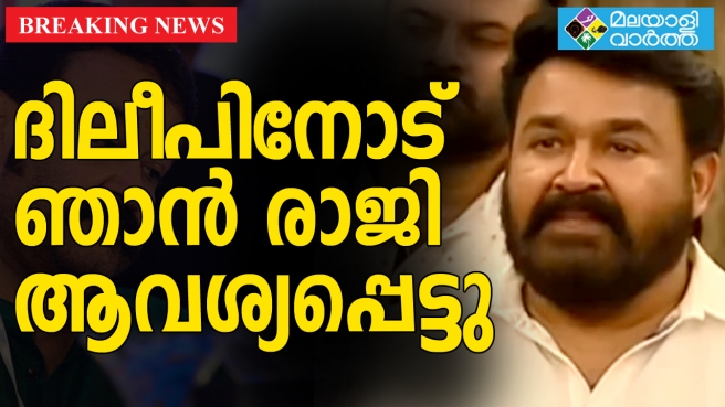 ദിലീപിനോട് ഞാന് രാജി ആവശ്യപ്പെട്ടെന്ന് അമ്മ പ്രസിഡന്റ് മോഹന്ലാല് വാര്ത്താസമ്മേളനത്തില് വ്യക്തമാക്കി. രാജി ദിലീപ് തന്നു, അത് സ്വീകരിച്ചു. വിമന് ഇന് കളക്ടീവ് സിനിമ കുറേ നാളായി ദിലീപിന്റെ രാജി ആവശ്യപ്പെടുന്നുണ്ട്. അതിന് സാവകാശം വേണമെന്ന് പറഞ്ഞു. തുടര്ന്ന് ചിലര് ഈ പ്രശ്നം വഷളായി. തുടര്ന്ന് ജനറല് ബോഡി വിളിക്കാതെ ദിലീപിനോട് രാജി ആവശ്യപ്പെടുകയായിരുന്നു. ജഗീഷും ദീലീപും തമ്മില് അഭിപായവ്യത്യാസമില്ല. കാര്യങ്ങള് പറഞ്ഞത് രണ്ട് രീതിയില് ആണെന്നാണ്. ലീഗല് ഒപ്പീനിയന് കിട്ടാന് വൈകിയതിനാലാണ് ദിലീപിനെ പുറത്താക്കുന്ന കാര്യത്തില് തീരുമാനം വൈകിയത്.