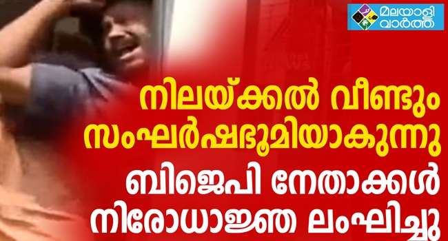 ശബരിമല യുവതി പ്രവേശന വിഷയത്തിൽ ബുധനാഴ്ച നിലയ്ക്കലിൽ പ്രഖ്യാപിച്ച നിരോധാനാജ്ഞ ലംഘിച്ചു. നിലയ്ക്കൽ വീണ്ടും സംഘർഷ ഭരിതമായിരിക്കുകയാണ് . സംഭവത്തിൽ നേതാക്കളുൾപ്പെട പോലീസ് പത്തു ബിജെപി പ്രവര്ത്തകരെ അറസ്റ്റ് ചെയ്തു നീക്കി.