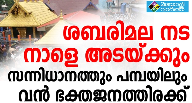 തുലാമാസപൂജ പൂര്ത്തിയാക്കി ക്ഷേത്രനട നാളെ രാത്രി 10ന് അടയ്ക്കും. മേല്ശാന്തി എ.വി. ഉണ്ണിക്കൃഷ്ണന് നമ്പൂതിരി അയ്യപ്പ വിഗ്രഹത്തില് ഭസ്മാഭിഷേകം നടത്തിയാണു നട അടയ്ക്കുക.