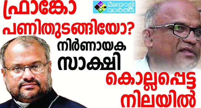 ജലന്ധറില് തിരിച്ചെത്തിയ ഫ്രാങ്കോ പണിതുടങ്ങിയോ? ഫ്രാങ്കോയ്ക്കെതിരെ കടുത്ത നിലപാട് എടുക്കുകയും, ബലാത്സംഗക്കേസിൽ പോലീസിന് നിര്ണായക മൊഴി നല്കുകയും ചെയ്ത പ്രധാന സാക്ഷി ഫാ. കുര്യക്കോസ് കാട്ടുത്തറ കൊല്ലപ്പെട്ട നിലയിൽ