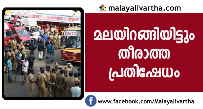ശക്തമായ പരിശോധന കടന്ന് യുവതികള് സന്നിധാനത്ത് എത്തില്ലെന്ന് പൊലീസ് ഉദ്യോഗസ്ഥര് പറഞ്ഞുവെങ്കിലും പ്രതിഷേധക്കാര് പിന്മാറാന് തയ്യാറായില്ല. തുടര്ന്ന് സന്നിധാനത്ത് കൂടുതല് തിരച്ചില് നടത്താമെന്ന ഉറപ്പില് പ്രതിഷേധം അവസാനിച്ച് ഇവര് പിന്മാറുകയായിരുന്നു.