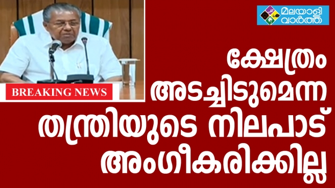 തന്ത്രി ശബരിമലക്ഷേത്രം അടച്ചിടുമെന്ന് പ്രഖ്യാപിച്ചതും പരികര്മികള് പതിനെട്ടാംപടിക്ക് താഴെ സത്യഗ്രഹമിരുന്നതും സുപ്രീംകോടതി വിധി അട്ടിമറിക്കാനുള്ള ഈ നീക്കമാണെന്ന് മുഖ്യമന്ത്രി പിണറായി വിജയന്, പന്തളം കൊട്ടാരത്തിന് ശബരിമലയില് നിയമപരമായി യാതൊരു അവകാശവും ഇല്ലെന്നും പിണറായി
