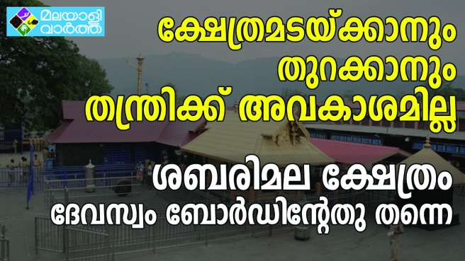 ക്ഷേത്രം തുറക്കുന്നതിന്റെയും അടയ്ക്കുന്നതിന്റെയും അവകാശം ദേവസ്വം ബോര്ഡിനു തന്നെയാണ്. തന്ത്രി ഒരു ജീവനക്കാരന് മാത്രമെന്ന് മുഖ്യമന്ത്രി പറയാതെ പറഞ്ഞു. 1949 ലെ കവനന്റ് അനുസരിച്ച് കൊച്ചി ദേവസ്വം ബോര്ഡിനും തിരുവിതാംകൂര് ദേവസ്വം ബോര്ഡിനുമായി അവകാശം ലഭിക്കുന്നു. ശബരിമല ക്ഷേത്രത്തിലെ നടവരവുള്പ്പെടെ അതില് തിരുവിതാംകൂര് ദേവസ്വത്തിന് വിട്ടുകൊടുത്തിരുന്നു. ശബരിമല ക്ഷേത്രത്തിന്റെ നിയമപരമായ അവകാശി തിരുവിതാംകൂര് ദേവസ്വം ബോര്ഡ് മാത്രമാണ്. എന്നാല് തന്ത്രിക്ക് ഉത്സവകാലത്ത് ചില ഉത്തരവാദിത്വങ്ങള് നല്കിയിട്ടുണ്ട്. അത് ഇല്ലാതാക്കുക സര്ക്കാരിന്റെ നയമല്ല.