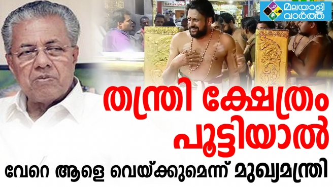 യുവതികള് പതിനെട്ടാംപടി കയറുമ്പോള് തന്ത്രി കണ്ഠരര് രാജീവര് ശ്രീകോവില് പൂട്ടി പോയാല് പകരം വേറെ ആളെ വെച്ച് ആചാര അനുഷ്ഠാനങ്ങള് നടത്തുമെന്ന് മുഖ്യമന്ത്രി, ലോകനാര്ക്കാവില് നടന്ന സംഭവം പറഞ്ഞാണ് ഇക്കാര്യം സൂചിപ്പിച്ചത്, മന്ത്രിമാരായ ജി.സുധാകരനും എം.എം മണിയും എ.കെ ബാലനും തന്ത്രിക്കെതിരെ വിമര്ശനം നടത്തിയതിന് പിന്നാലെയാണ് മുഖ്യമന്ത്രി നിലപാട് വ്യക്തമാക്കിയത്