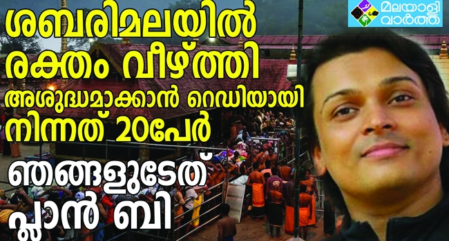 കൈയ്യിൽ സ്വയം മുറിവേൽപിച്ച് രക്തം വീഴ്ത്താനായിരുന്നു പദ്ധതി. ഇതായിരുന്നു ഞങ്ങളുടെ പ്ലാൻ ബി. സർക്കാരിനു മാത്രമല്ല, ഞങ്ങൾക്കും വേണമല്ലോ പ്ലാൻ ബിയും സിയും. ശബരിമല അയ്യപ്പശാസ്താവിന്റെ സന്നിധി രക്തം വീണോ മൂത്രം വീണോ അശുദ്ധമായാൽ മൂന്നു ദിവസം നട അടച്ചിടുന്നതിന് ആരുടെയും അനുവാദം ആവശ്യമില്ല. നട തുറക്കണം എന്നു പറയാൻ ആർക്കും അധികരവുമില്ല. ഈ സാധ്യത പരിഗണിച്ചായിരുന്നു ഇങ്ങനെ ഒരു സംഘം തയാറായി നിന്നത്.