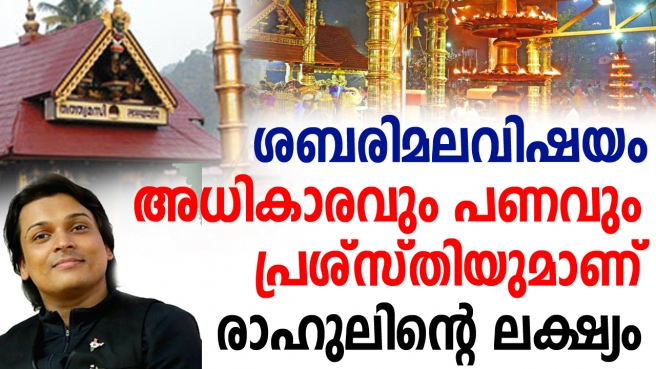 ശബരിമലയില് സ്ത്രീ പ്രവേശനത്തെ തടയുക എന്ന ലക്ഷ്യത്തോടെയാണ് രാഹുല് ഈശ്വര് പ്രയാര് ഗോപാലകൃഷ്ണനുമായി ചേര്ന്ന് ശബരിമല ധര്മശാസ്താ ക്ഷേത്രത്തെ ശ്രീ അയ്യപ്പസ്വാമി ക്ഷേത്രമാക്കിമാറ്റിയത്;രാഹുലിന്റെ ലക്ഷ്യം അധികാരവും പണവും പ്രശ്സ്തിയുമെന്ന് മാധ്യമ പ്രവർത്തക