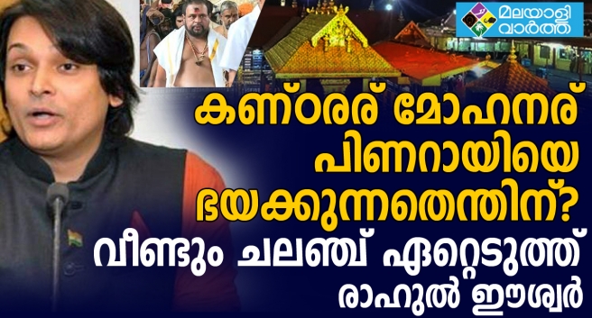 കണ്ഠരര് മോഹനര് പിണറായിയെ ഭയക്കുന്നതെന്തിന്? അഞ്ചാംതീയതി നട തുറക്കുമ്പോൾ താൻ ശബരിമലയിലുണ്ടാകുമെന്നും, സ്ത്രീകളെ പ്രവേശിപ്പിച്ചുള്ള ആചാരലംഘനം നടത്താൻ അനുവദിക്കില്ലെന്നും വീണ്ടും വെല്ലുവിളിച്ച് രാഹുൽ ഈശ്വർ