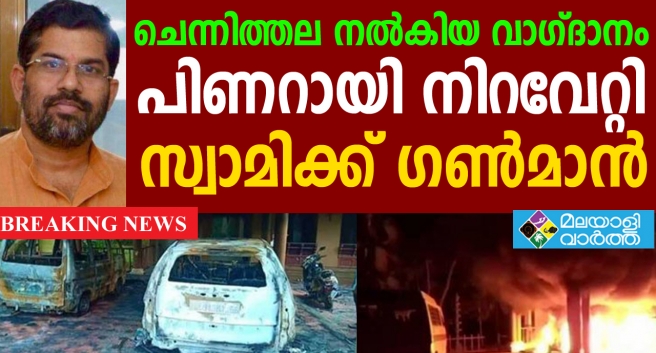 എന്നാൽ ശബരിമല പ്രക്ഷോഭം കൊടുമ്പിരി കൊണ്ടിരിക്കുന്ന സമയത്ത് സ്വാമിയുടെ കാറുകൾ തീയിട്ടപ്പോൾ നേരിട്ടെത്തി സ്വാമിക്ക് മുഖ്യ മന്ത്രി പിണറായി വിജയൻ എല്ലാ പിന്തുണയും നൽകുമെന്ന് ഉറപ്പ് നൽകിയിരുന്നു. തുടർന്നാണ് ഒരു ഗൺമാനെ സർക്കാർ അനുവദിച്ചത്. അതെ സമയം കാറുകൾ കത്തിച്ച സംഭവത്തിൽ അന്വേഷണം പുരോഗമിക്കുകയാണ്. സ്വാമി സന്ദീപാനന്ദഗിരിയുടെ ആശ്രമത്തിലെ വാഹനങ്ങൾ കത്തിച്ചത് പെട്രോള് ഒഴിച്ചെന്ന് ശാസ്ത്രീയപരിശോധനയില് കണ്ടെത്തി. വിരലടയാളങ്ങളോ മറ്റു തെളിവുകളോ ലഭിച്ചിട്ടില്ല. കൂടുതല് പരിശോധനകള് നടത്താനാണ് തീരുമാനം.