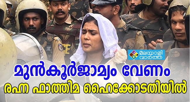 മതവിശ്വാസത്തെ വ്രണപ്പെടുത്താൻ ശ്രമം; ശബരിമലയിൽ പ്രവേശിക്കാൻ ശ്രമിച്ച രഹ്ന ഫാത്തിമ ഹൈക്കോടതിയിൽ മുൻകൂർ ജാമ്യം തേടുന്നു
