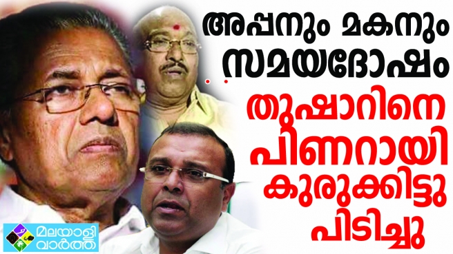 വരവിൽ കവിഞ്ഞ സ്വത്ത് ഉൾപ്പെടെ വെള്ളാപ്പള്ളി നടേശനെതിരെ നിരവധി കേസുകെട്ടുകൾ കേന്ദ്ര സർക്കാരിന്റെ കൈയിലുണ്ട്. അതിൽ കേസ് രജിസ്റ്റർ ചെയ്യാൻ വലിയ കാലതാമസമില്ല. അമിത് ഷാ ശിവഗിരിയിലെത്തിയപ്പോൾ വെള്ളാപ്പള്ളിയുമായി ഉണ്ടാക്കിയ കരാറിന്റെ അടിസ്ഥാനത്തിലാണ് ബി ജെ പി നീങ്ങുന്നത്. അതിനിടയിലാണ് ഭൂമറാങ്ക് പോലെ നടേശനെ നോക്കി പിണറായി കണ്ണൂരുട്ടിയത്. അതോടെ വെള്ളാപ്പള്ളി താമരയെ തള്ളി പറഞ്ഞു. ഭാവിയിൽ താമരയുമായി യാതൊരു ചങ്ങാത്തവും വേണ്ടെന്നാണ് വെള്ളാപ്പള്ളിയുടെ തീരുമാനം. ഇതിൽ പിണറായി സംപ്രീതനല്ലെന്നതിന്റെ പുതിയ തെളിവാണ് തുഷാറിനെതിരായ വിജിലൻസ് കേസ്.