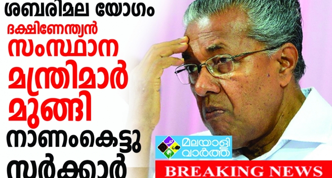 ദക്ഷിണേന്ത്യന് സംസ്ഥാനങ്ങള് ശബരിമല ചൂടില് തിളയ്ക്കുമ്പോള് കേരള സര്ക്കാര് വിളിച്ച അവലോകന യോഗത്തില് നിന്ന് വിട്ടുനിന്ന് അവര് എതിര്പ്പു രേഖപ്പെടുത്തി. ശബരിമല വിഷയത്തില് കേരള സര്ക്കാരിനേറ്റ മഹാ പ്രഹരമാണ് ഇന്നത്തേത്. നാണക്കേടില് മുഖ്യമന്ത്രി യോഗത്തില് നിന്നു വിട്ടുനിന്നു. പേരിന് ചില ഉദ്യോഗസ്ഥരെ മാത്രമയച്ച് മറ്റ് സംസ്ഥാനങ്ങള് തടി തപ്പുകയായിരുന്നു. ആ സംസ്ഥാനങ്ങളിലെ അയ്യപ്പ ഭക്തരുടെ എതിര്പ്പു ഭയന്നാണ് യോഗത്തില് നിന്ന് മന്ത്രിമാര് വിട്ടുനിന്നതെന്ന് ബന്ധപ്പെട്ട കേന്ദ്രങ്ങള് സൂചിപ്പിക്കുന്നത്.
