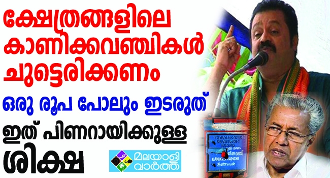 അങ്ങേയറ്റം വേദനയോടെ സുരേഷ് ഗോപി എം.പി പറയുന്നു സർക്കാർ നടത്തുന്ന ഈ നീക്കത്തിന് തക്കതായ ശിക്ഷ അയ്യപ്പൻ നൽകും; ക്ഷേത്രങ്ങളിലെ കാണിക്ക വഞ്ചികൾ ചുട്ടെരിക്കണം, ഒരു രൂപ പോലും അതില് ഇടരുത്