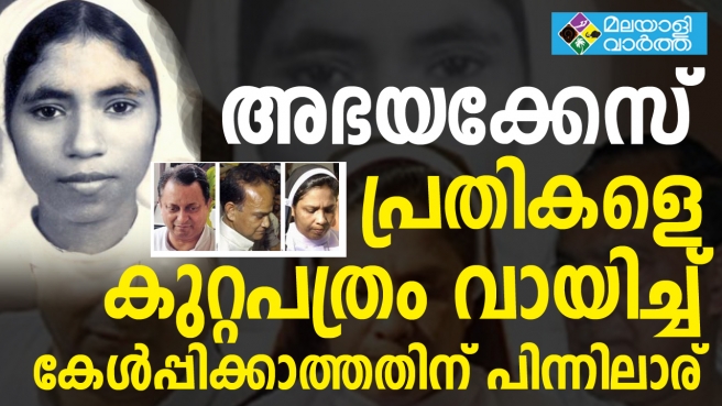 1992 മാര്ച്ച് 27 നാണ് സിസ്റ്റര് അഭയയെ കോട്ടയം പയസ് ടെന്ത് കോണ്വെന്റിലെ കിണറ്റിനുള്ളില് കൊല്ലപ്പെട്ട നിലയില് കണ്ടെത്തിയത്.ഫാദര്. തോമസ് കോട്ടൂര്, സിസ്റ്റര് സെഫി, കെ. ടി. മൈക്കിള് എന്നിവരാണ് നിലവില് വിചാരണ നേരിടുന്ന പ്രതികള്. സി.ബി.ഐ കുറ്റപത്രത്തില് രണ്ടാം പ്രതിയായിരുന്ന ഫാ.ജോസ് പുതൃക്കയിലിനെ തെളിവുകളുടെ അഭാവത്തില് സിബിഐ കോടതി മാര്ച്ച് ഏഴിന് കുറ്റവിമുക്തനാക്കി.