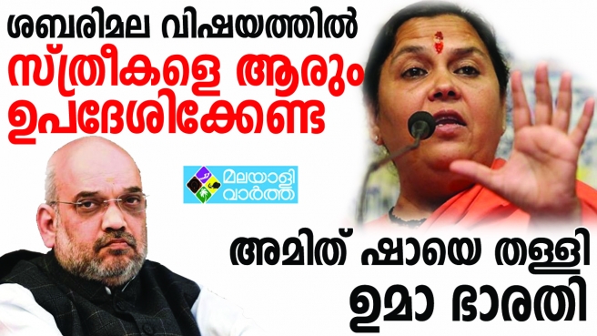 ശബരിമലയില് എല്ലാ പ്രായത്തിലുമുള്ള സ്ത്രീകള്ക്ക് പ്രവേശിക്കാന് അനുമതി നല്കി ഉത്തരവ് പുറപ്പെടുവിച്ചതില് സുപ്രീംകോടതി കുറ്റം പറയാന് കഴിയില്ല; അമിത് ഷായെ തള്ളി ഉമാ ഭാരതി