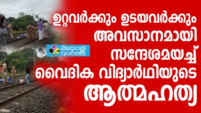 ആത്മഹത്യചെയ്യുന്നുവെന്ന് ബന്ധുക്കള്ക്കും സുഹൃത്തുക്കള്ക്കും അവസാന മെസേജ്; ചങ്ങനാശ്ശേരിയില് വൈദിക വിദ്യാര്ഥി ട്രെയിന് തട്ടി മരിച്ചനിലയില്