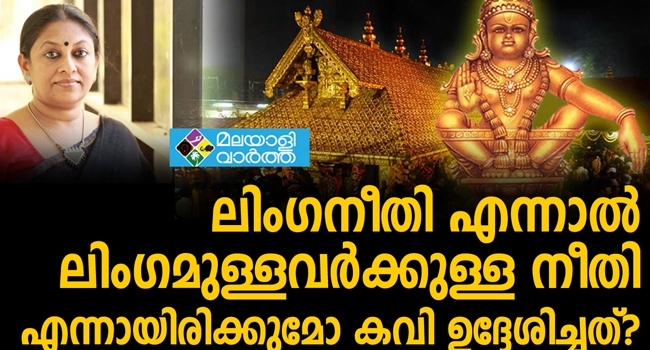ലിംഗനീതി എന്നാല് ലിംഗമുള്ളവര്ക്കുള്ള നീതി എന്നായിരിക്കുമോ കവി ഉദ്ദേശിച്ചത്? ശബരിമല വിഷയത്തിൽ സുഗതകുമാരിക്കെതിരെ കെ ആര് മീര