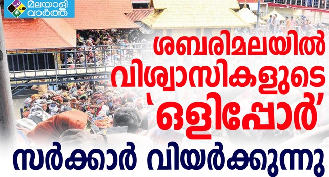 കഴിഞ്ഞ വര്ഷം വരെ വളരെ ഭക്തിയായി നടന്നിരുന്ന ശബരിമല തീര്ത്ഥാടനം ഇപ്പോള് മുള്മുനയിലാണ്. ശബരിമലയില് യുദ്ധ സന്നാഹമൊരുക്കി പോലീസ് കാത്തിരിക്കുമ്പോള് അതേ നാണയത്തില് ഒളിപ്പോരിനൊരുങ്ങിയിരിക്കുകയാണ് വിശ്വാസികള്. യുവതികളെ പോലീസിന്റെ പത്മവ്യൂഹത്തിലാക്കി സന്നിധാനത്തെത്തിക്കാന് സര്ക്കാര് ഒരുമ്പെട്ടാല് തടയാനുള്ള നീക്കത്തില് ബി.ജെ.പി. നേതാക്കന്മാരായ കെ. സുരേന്ദ്രനും വി.വി. രാജേഷും മുന് നിരയിലുണ്ടാകും. പോലീസിന്റെ കണ്ണുവെട്ടിച്ച് ഇവര് കാട്ടുവഴികളിലൂടെ സന്നിധാനത്തെത്തുമെന്നാണ് സൂചന. ഇവര്ക്ക് കരുത്തായി എല്ലാ ജില്ലകളില് നിന്നും പ്രവര്ത്തകരും എത്തിയിട്ടുണ്ട്. മാത്രമല്ല മറ്റ് സംസ്ഥാനങ്ങളില് നിന്നും എന്തിന് മുംബൈയില് നിന്നുപോലും വിശ്വാസികളും സംഘടിച്ചെത്തുന്നത് പോലീസിന് വലിയ തലവേദനയാണ് സൃഷ്ടിക്കുന്നത്. വിശ്വാസികളുടെ രൂപത്തില് വരുന്ന ക്രിമിനലുകളേയും തിരിച്ചറിയാന് ശ്രമിക്കുന്നില്ല.